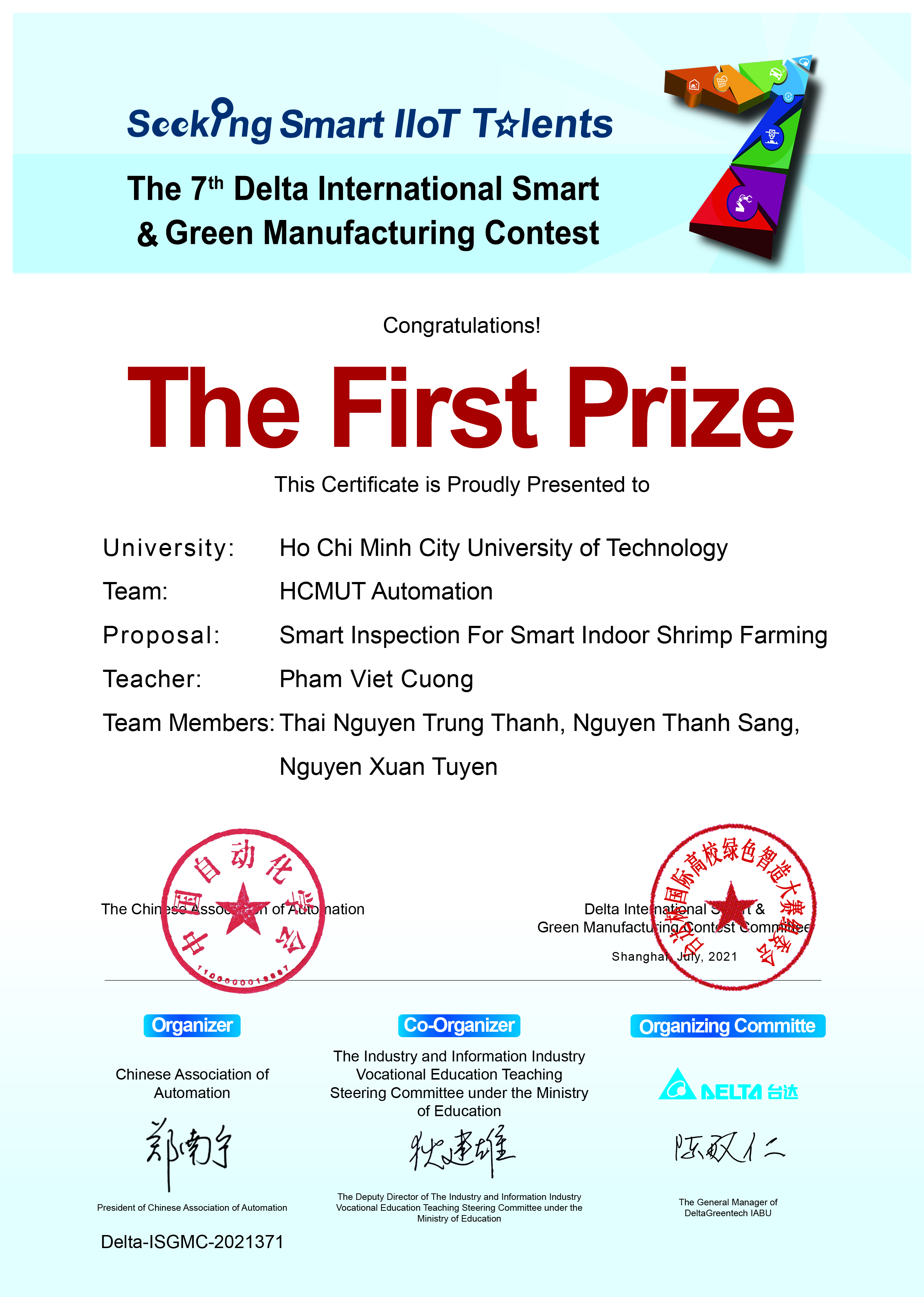 Research and develop cyber physical system for smart farming to experiment company's products, achieved The First Prize in The 7th International Smart and Green Manufacturing Contest (organized by Chinese Assocication of Automation): lead a team of 3 members, manage progress of project, manage budget of project, develop Firebase(Google)-based cloud database, develop Angular-based web visualization and Android app.